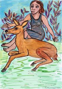 In this collection of prints and drawings Eileen Cooper celebrates womanhood with the female figure a constant presence in her work. The woman is often accompanied by a symbolic companion: a cat and more exotic beasts of the circus and mythologies.